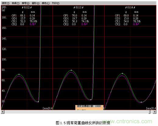 隨著電子技術與控制技術的快速發(fā)展,按鍵開關荷重位移曲線儀也要跟上時代的步伐,從一開始只能測出OF、OD和CK值發(fā)展到現(xiàn)在能同時測出23個參數(shù),有PK,CK,RPK,RLK,LK等值,可以通過設定上下限來保護儀器被壓壞荷重感應器。最小顯示行程也從1mm發(fā)展到現(xiàn)在的0.001mm,最小顯示荷重也從10克精度到現(xiàn)在的0.01克精度,界面設定也從嵌入式發(fā)展到現(xiàn)在利用WINDOWS中文視窗畫面設定,操作簡單方便,且所有資料皆可儲存(試驗條件、荷重曲線圖、測試結果、檢查報表…等等)。