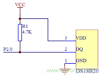 設(shè)計中采用支持“一線總線”接口、抗干擾性強、外部電路簡單、精確度高的DS18B20溫度傳感器對溫度的實時測量。其中,DS18B20 管腳2 即DQ 接在MSP430F149 的P2.0管腳,如圖所示。