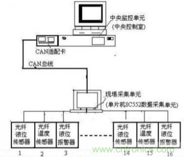 充分應(yīng)用CAN網(wǎng)絡(luò)和光纖傳感器的特點,將整個系統(tǒng)的擴展-遠(yuǎn)程油庫油罐的液位、溫度信號實時監(jiān)測系統(tǒng)。