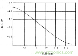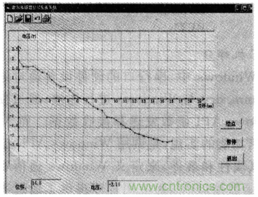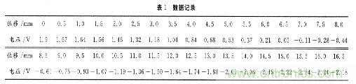 從圖7中PC機界面顯示位移一電壓坐標(biāo)圖,表1記錄的數(shù)據(jù)以及圖8在示波器上顯示的霍爾線性電路理想電壓一位移曲線圖相比較,可以發(fā)現(xiàn)由于傳感器實驗臺受外界干擾等原因使得輸出信號輸出誤差在所難免,而且沒有電平轉(zhuǎn)換,使得VB繪圖中得到的數(shù)值存在負值;但是可以在圖中看到傳感器輸出的電壓值在正負之間有明顯的對稱性,與要求輸出的理想輸出信號波形相符合,證明本系統(tǒng)運行良好,設(shè)計的非常成功。