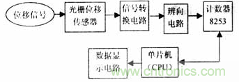 本設(shè)計的硬件電路主要由單片機89C51、計數(shù)器8253、細分與辨向電路、信號變換電路和光柵位移傳感器組成。如圖1所示。