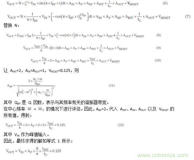 積分器工作從0到B執(zhí)行N次。這將覆蓋輸入的正極。全波整流隨后可通過其它增益系數(shù)進行補償。替換VIN,從0到1/fBP積分。