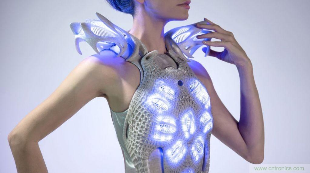 我們還可以通過肢體方面的一些表達(dá)來進(jìn)行溝通,很顯然,要想充分利用人類的肢體語(yǔ)言,智能服飾是一個(gè)非常不錯(cuò)的選擇。來自荷蘭的設(shè)計(jì)師Anouk Wipprecht就設(shè)計(jì)了一系列能夠通過生物特征識(shí)別技術(shù)來表達(dá)自身情緒的智能服裝。未來,我們可能會(huì)穿上一些帶有LED燈的類似盔甲之類的服裝,即使不說話也能表達(dá)自己的想法,不過我想應(yīng)該會(huì)有人不喜歡這么奇怪的衣服。