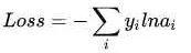 然而實(shí)際上x(chóng)對(duì)應(yīng)的概率其實(shí)是第一類(lèi),比如[1,0,0],現(xiàn)在拿到的概率(或者可稱為似然)是[0.88、0.12、0]。那么它們之間究竟有多大的差距呢?這個(gè)差距就是損失值loss。如何獲取到損失值呢?在softmax里我們用互熵?fù)p失函數(shù)計(jì)算量最小(方便求導(dǎo)),如下所示: