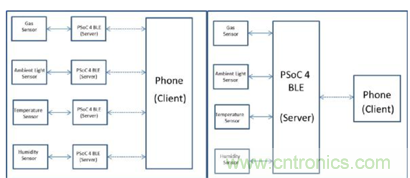 傳感器可以大致分為模擬和數(shù)字兩種。典型的模擬傳感器包括用于監(jiān)測(cè)煙霧、氣體、環(huán)境光線、人員感應(yīng)等的傳感器。數(shù)字傳感器包括監(jiān)測(cè)溫度、濕度、壓力、加速度等的傳感器。當(dāng)BLE子系統(tǒng)與應(yīng)用處理器集成時(shí),傳感器可以采用多種不同的方式進(jìn)行連接。例如,可以將模擬傳感器饋送到前端具有電壓輸出器的SAR ADC。數(shù)字傳感器無(wú)需進(jìn)行模擬轉(zhuǎn)換,因此可以通過(guò)任何通信接口(如I2C、SPI或單線接口)采集數(shù)據(jù)。集成的定時(shí)器、計(jì)數(shù)器、脈寬調(diào)制器和通用數(shù)字模塊(UDB)均可用于實(shí)現(xiàn)自定義邏輯以進(jìn)一步處理傳感器數(shù)據(jù)。最終,經(jīng)處理或所接收的數(shù)字?jǐn)?shù)據(jù)可以通過(guò)BLE接口發(fā)送,并由內(nèi)置BLE功能的手機(jī)或任何其他客戶端設(shè)備進(jìn)行監(jiān)測(cè)。隨著資源可用性和成本的不斷變化,可選擇不同系列的BLE集成處理器(如PSoC 4 BLE)以適應(yīng)各種應(yīng)用。