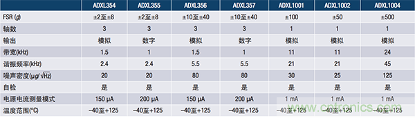 ADI公司最近推出了一系列新型低噪聲、低功耗、3軸加速度計(jì):提供模擬輸出的ADXL354;提供數(shù)字輸出和±2 g、±4 g、±8 g可編程范圍的ADXL355;提供模擬輸出的ADXL356;提供數(shù)字輸出和±10 g、±20 g、±40 g可編程范圍的ADXL357。