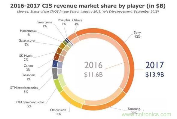 據(jù)麥姆斯咨詢介紹,CMOS圖像傳感器(CIS)已成為半導體產(chǎn)業(yè)的關鍵器件。這不僅是因為所涉及的技術及其帶來的市場營收,而是因為現(xiàn)在已經(jīng)無法想象智能手機、汽車甚至是房屋如果沒有攝像頭的支持會怎樣。根據(jù)Yole最新發(fā)布的《CMOS圖像傳感器產(chǎn)業(yè)現(xiàn)狀-2018版》報告,2017年CIS產(chǎn)業(yè)的市場規(guī)模達到了139億美元,預計未來5年的復合年增長率(CAGR)將達到9.4%。