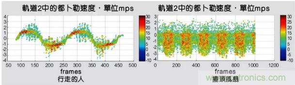 圖3顯示了行走的人和擺頭風(fēng)扇的微多普勒特征差異;一旦識別出區(qū)分兩個物件的正確特征,分類器就會在設(shè)備上即時進行區(qū)分。