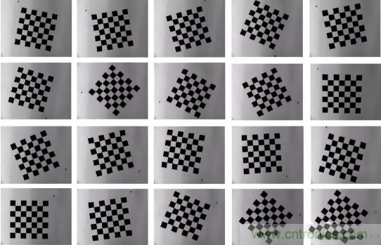 采用張正友提出的基于2D平面棋盤格的攝像機標(biāo)定方法,利用Matlab攝像頭標(biāo)定工具完成相機參數(shù)的標(biāo)定。