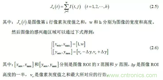 通過觀察圖像看出,激光條紋大致平行于圖像的u 軸,而且激光條紋處像素的灰度值高于圖像中其它像素的灰度值,所以圖像的ROI 可以通過對每行像素灰度值進(jìn)行求和得到: