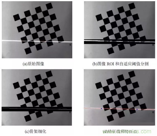 圖像處理的目的是提取激光條紋上特征點的圖像坐標(biāo)。