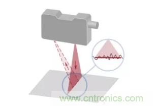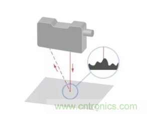 根據(jù)三角測量原理,通過測量反射光的入射角,可計算出傳感器到物體的距離。入射角隨距離而變化,因而激光點在接收器上的位置也相應變化。