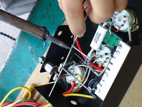 元件鍍錫----在刮凈的引線(xiàn)上鍍錫??蓪⒁€(xiàn)蘸一下松香酒精溶液后,將帶錫的熱烙鐵頭壓在引線(xiàn)上,并轉(zhuǎn)動(dòng)引線(xiàn)。即可使引線(xiàn)均勻地鍍上一層很薄的錫層。導(dǎo)線(xiàn)焊接前,應(yīng)將絕緣外皮剝?nèi)?,再?jīng)過(guò)上面兩項(xiàng)處理,才能正式焊接。若是多股金屬絲的導(dǎo)線(xiàn),打光后應(yīng)先擰在一起,然后再鍍錫。